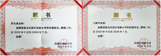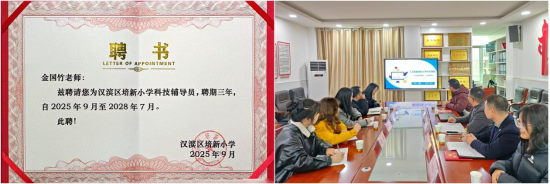 随后,双方举行聘任仪式。中心科普团队成员、太阳成tyc122cc集团学工办主任罗从政被聘为培新小学科学副董事长,成员教师金国竹、王新华受聘担任科技辅导员。此次聘任标志着双方在人工智能科普、科学课程教学、科技竞赛指导等领域的合作步入制度化、常态化阶段。