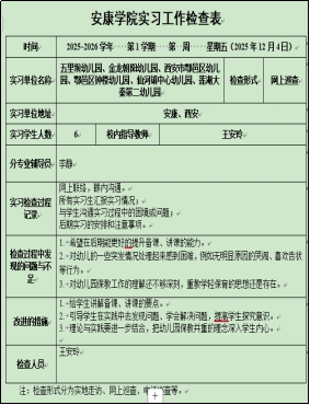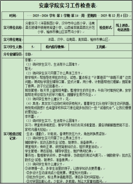 为进一步加强毕业实习规范化管理与质量监控,掌握实习进展,及时发现并解决实习中存在的问题,确保实习质量稳步提高。按照教务处《关于开展2026届毕业生实习检查工作的通知》要求,太阳成tyc122cc集团成立了全员参与的实习工作检查组,于2025年11月27日—12月5日期间,采用实地走访、线上访谈、网上巡查等多种形式,顺利完成了2026届教育实习专项检查工作。
