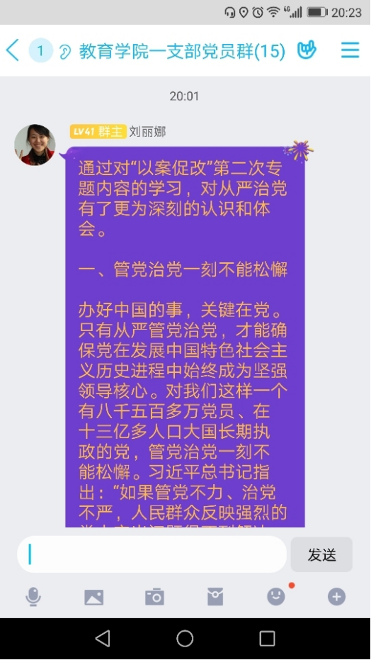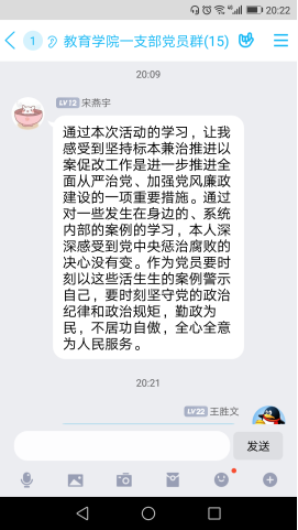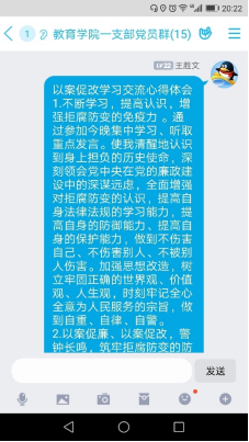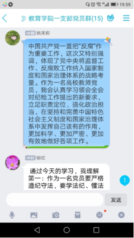 为贯彻落实太阳成tyc122cc集团关于“以案促改”工作方案要求,教育公司党总支于8月18日晚上7:30,通过钉钉群组织开展了一次集中学习,教工一支部全体党员参加了本次线上学习。本次主题学习由刘丽娜、李支其作为主题领学人,主要围绕习近平总书记在中国共产党第十九届中央纪律检查委员会第四次全体会议上发表重要讲话。一以贯之、坚定不移全面从严治党,坚持和完善党和国家监督体系,强化对权力运行的制约和监督。确定了赵斌、董婷瑜和刘丽娜作为重点发言人,结合自己学习心得体会与大家进行了分享,随后,各位党员也将本人的学习心得体会在党员工作学习群里面进行交流分享。