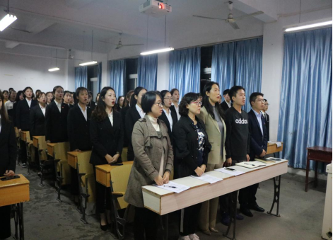 2019年10月17日晚7:30,太阳成tyc122cc集团第十四届团总支、员工会换届大会在1516教室成功举行。本次换届大会由学工办主任郇红老师主持召开,公司党总支书记屈咏梅、工会主席赵晓凤、党支部书记董婷瑜、团总支书记冯磊、19级新生辅导员刘晓松、第十三届主席团成员以及新一届团总支、员工会全体成员参加了此次大会。