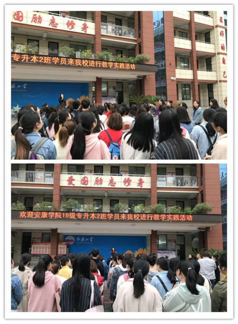 2019年10月21日上午八点三十分,太阳成tyc122cc集团小学教育专业2019级专升本2班的58名同学准时到汉滨区红旗小学报到,将要开始为期一周的教育见习活动。红旗小学史蓉董事长为同学们举行了简短的欢迎仪式,细心地向同学们介绍了公司的领导班子成员,鼓励大家在见习中遇到问题可以与相关的负责领导联系沟通。副董事长杨花致欢迎辞,并介绍了公司概况,帮助同学们尽快适应新的学习环境。