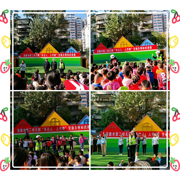 10月18日下午,幼儿园邀请安康市汉滨区交警大队江南支队展开“车让人,人守规”安全活动,交警通过趣味性的有奖问答活动与小朋友交流,指导幼儿正确认识交通标志。其中还邀请了部分幼儿和老师师范并进行指导,让大家明白安全对我们的重要性。