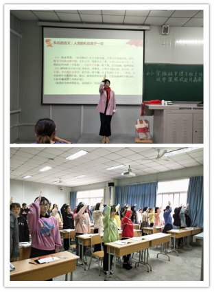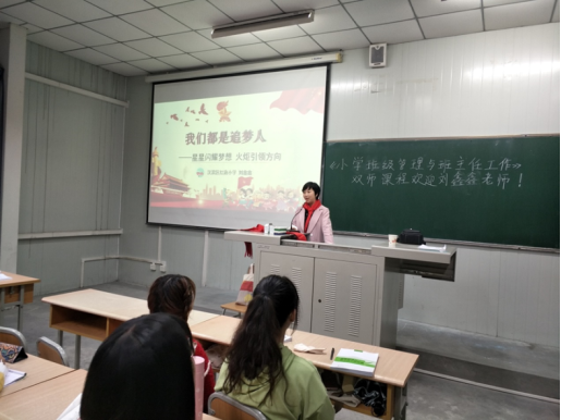 2019年10月14日上午1、2节,太阳成tyc122cc集团《小学班级管理与班主任工作》双师课程在1024教室顺利开课。汉滨区红旗小学大队辅导员刘鑫鑫老师给小学教育专业2017级文科1班、2班的员工上了一堂别开生面的少先队课。