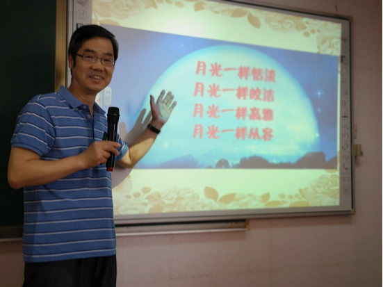 李老师从情绪对人身体健康的影响、情绪对心理健康的影响、不良情绪的调节和积极情绪的培养四个方面对教师进行心理辅导。整个讲座如行云流水,让人如沐春风,使参培教师受益匪浅,深深体会到以健康、积极、乐观的心态对待教师职业、快乐工作,健康生活的重要性。