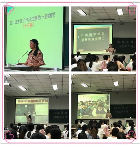 红旗小学一级教师孙标双老师从六个方面介绍了何为班主任工作,又结合自己的工作经验细心地叮嘱同学们班主任工作的“十不要 ”,让同学们获益颇多。教育故事的分享又让同学们看到了一位优秀班主任是如何协调“班主任”和“科任老师”这两个角色,并取得多方面成绩的。