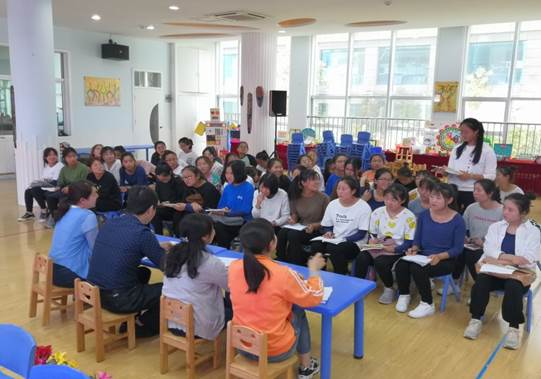 在教研主任王昕老师指导下,幼儿园的老师们就本次活动过程与同学们进行研讨交流,授课教师对自己的课程进行了讲解与反思。