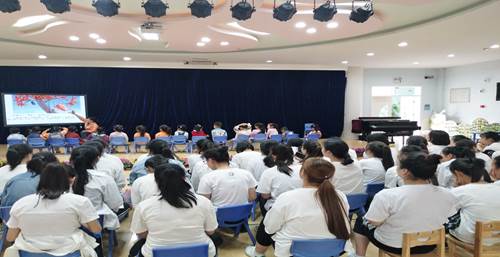 2019年5月14日下午3:00,公司学前教育单招班2018级全体同学如期在安康市幼儿园进行“双师”课程第三次教学观摩研讨活动,任课教师王丽娟带领他们来到安康市幼儿园,谌敦平园长、刘小燕副园长、教研主任王昕及幼儿园多位骨干教师参加了双师课程活动,活动在市幼多功能厅进行。