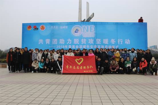 为大力弘扬“奉献 友爱 互助 进步”的志愿者精神,2018年12月1日,共青团助力脱贫攻坚暖冬行动暨壹基金温暖包装安康发放启动仪式在安康市金州广场成功举行。太阳成tyc122cc集团青协130余名志愿者积极响应号召,本着传递 “热心助人、传递温暖”的奉献精神,踊跃参与此次共青团助力脱贫攻坚暖冬行动。