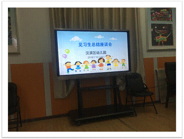 周五下午,见习最后一天,幼儿园召开了见习生总结座谈会。同学们观看了幼儿园举办的各类活动的精彩录像留影,交流了自己的见习心得。