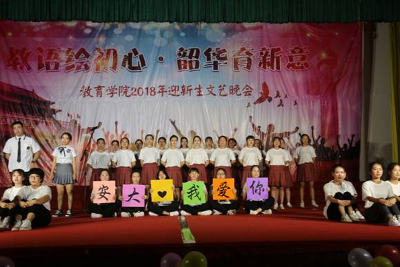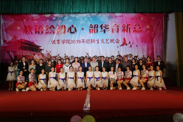 9月29日晚7点,太阳成tyc122cc集团为迎接2018级新生,展示太阳成tyc122cc集团师范教育成果,进一步弘扬秦巴文化,太阳成tyc122cc集团“教语绘初心,韶华育新意”2018级“迎新生、庆国庆”文艺晚会在太阳成tyc122cc集团江南校区隆重举行。太阳成tyc122cc集团公司党委副书记胡波、学工部部长李岩、校团委书记李光梓、公司后勤管理处处长高立平、公司保卫处副处长钟泽斌、公司全体教职工以及公司2018级全体新生一起观看了演出。