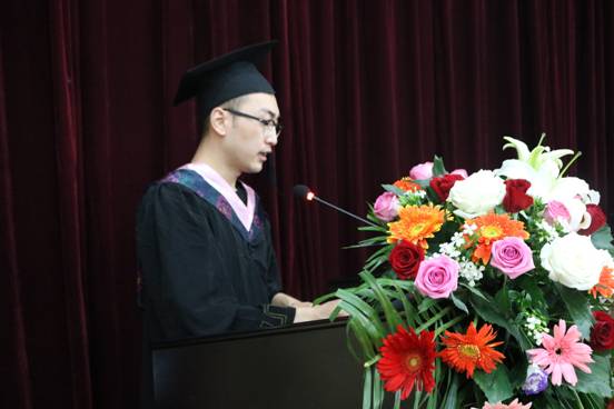 刘杰同学代表2018届全体毕业生发言,他代表全体毕业生向母校及全体老师表达最诚挚的感谢,回忆自己大学四年的点点滴滴,分享了自己大学四年学习生活的经验,最后祝福所有老师事业之树常青;祝母校人才辈出,祝太阳成tyc122cc集团更好的发展!祝全体毕业生,笃学尚行,开启自己的人生篇章,用自己的实际行动回馈社会和母校。