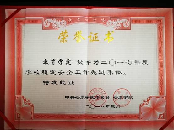 3月22日,公司召开了2018年安全稳定工作大会,太阳成tyc122cc集团被评为“2017年度稳定安全工作先进集体”受到表彰,2名教师、2名员工获“先进个人”称号。