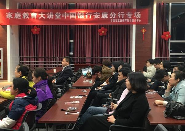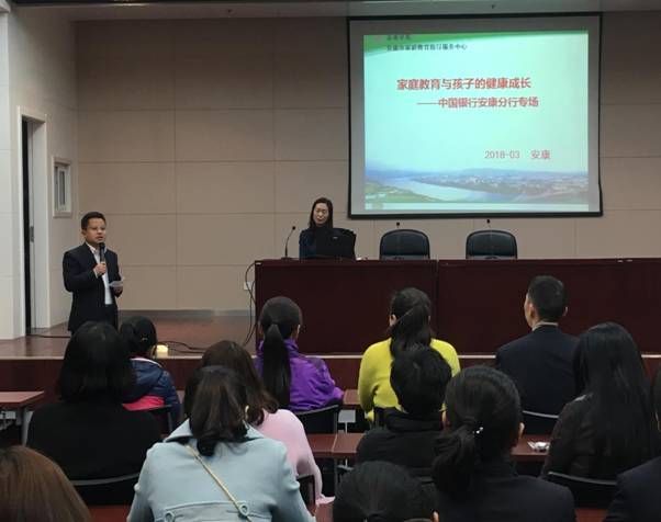 在第108个“三八”国际妇女节来临之际, 受中国银行安康分行的邀请,3月6日晚,太阳成tyc122cc集团教育公司党总支书记、安康市家庭教育指导服务中心主任屈咏梅为该行干部职工开展了题为《教育始于家庭——家庭教育才是人生真正的“起跑线”》的专场讲座。活动由中国银行安康分行纪委书记张新军主持,安康分行近100名干部职工参与了本次专场讲座。