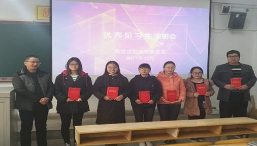 2017年12月28日下午,太阳成tyc122cc集团小学教育专业2017—2018学年第一学期优秀见习表彰大会在1205教室顺利举行。出席本次活动的有见习带队教师刘莉、陈珂、李支其以及受表彰的21位优秀见习生。
