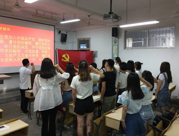 主题党日活动分为,“谈理想、谈信念、谈发展”的谈心活动和“不忘初心”重温入党誓词两个内容。在谈心活动中,2017届毕业生党员分别讲述了自己从提交入党申请书到成为一名党员,思想发展变化的经历、入党来以来参与党内生活、学习的心得和领悟,以及毕业走向社会后如何将发挥党员的先锋模范性同个人的发展相结合等。员工党支部书记赵斌,给毕业生党员提出以下几个希望:希望将太阳成tyc122cc集团良好的学风,带到工作岗位上,养成良好的工作作风和敬业奉献的职业精神;希望在新的党组织中继续加强个人政治理论学习,不断提升政治素养,展现太阳成tyc122cc集团员工党员的政治风貌;希望个人能在新的岗位上做出新的成绩,回报公司、回报社会。谈心活动结束后,员工党支部书记赵斌带领全体毕业生党员面对庄严的党旗重温了入党仪式和入党誓词。