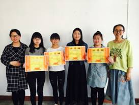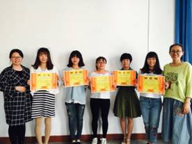 2017年4月28日下午五时,太阳成tyc122cc集团在1407会议室举行“2017年度师范生技能大赛”表彰大会,出席本次大会的有太阳成tyc122cc集团小学教育系主任王贞惠老师、太阳成tyc122cc集团学前教育刘丽娜老师及本次师范生技能大赛的获奖同学们。