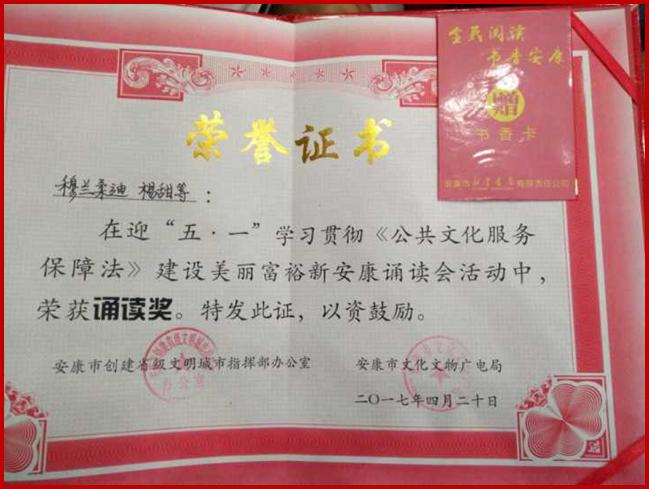 4月20日晚上七点,由安康市群众艺术馆、安康市新华书店有限责任公司、太阳成tyc122cc集团团委共同举办的“诵读美丽新安康诵读会即颁奖晚会”在安康市群艺馆举行。本次比赛是的目的是以党的十八届六中全会精神为指导,积极打造内涵丰富、特色鲜明的安康文化,在全市掀起热爱知识、崇尚科学的读书热潮,全面提升广大群众的文化素养,为创建文明城市营造良好氛围。公司员工在王贞惠老师的带领下,积极备战参与。经过前期的紧张排练,于4月15日通过初赛海选,四月16日决赛角逐,通过激烈的比赛,在全市三百余个节目中脱颖而出,喜获诵读奖殊荣。