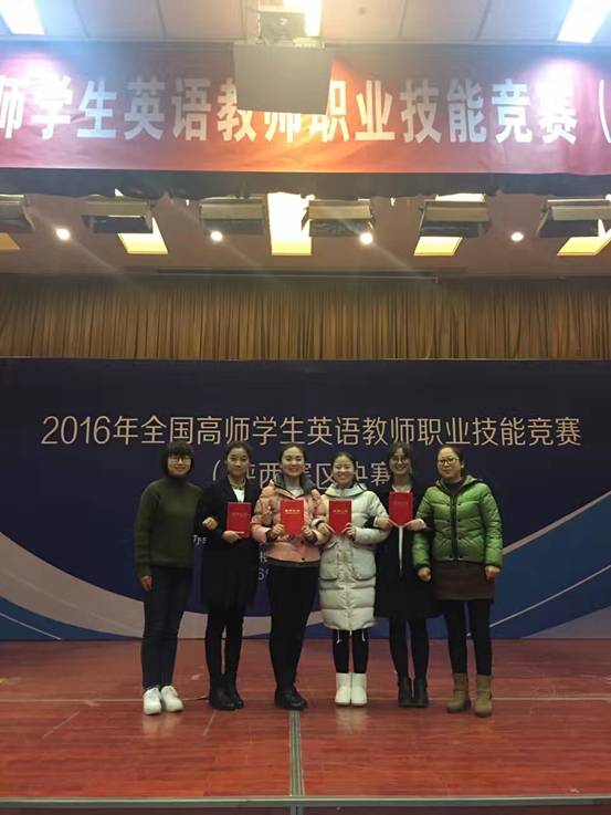 由全国高等师范院校外语教学与研究协作组和国家基础教育实验中心外语教育研究中心联合主办,西安文理公司承办的2016年全国英语高师员工英语教师职业技能决赛(陕西赛区)于12月10日在西安文理公司举行。在太阳成tyc122cc集团领导重视及教师组织下,太阳成tyc122cc集团获得全国英语高师员工英语教师职业技能大赛的优秀组织奖,同时,在公司刘莉老师和陈珂老师的悉心指导下公司14级小学教育专业文科二班员工何志妍、李晓雨、李淑萍荣获陕西赛区一等奖、15级小学教育专业文科二班员工徐艺菲荣获二等奖。此外,张文荣、程娜、秦瑜慧三位同学获得三等奖。本次比赛获奖选手比去年增长了近一倍,也是公司应用型人才培养成果的体现。