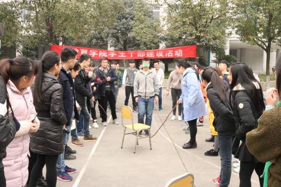 首先由主持人魏成龙简要讲述本次活动意义以及活动目的,接着屈咏梅与赵斌老师致辞并宣布活动开始。第一个正式活动名为“快速排列”。活动进行三轮并限定时间,开始阶段不熟悉规则的同学们频频出错,在第二轮后同学们终于掌握了游戏方法,各队伍之间竞争激烈,奋起直追。该游戏意义在于队员必须打破常规思维,锻炼每个队伍的协作能力,促进团队分工与协作。第二个活动名为“相信队友”。听了名字就知道活动二更需要队友之间的相互信任与相互协作。在规定的道路内放有四把椅子充当“炸弹”,一成员蒙眼向前,另一成员作指导,行走过程中不能撞到椅子。道路两旁同学围成人墙为队员加油助威,精彩纷呈。第三个活动“运送炸弹”。队员手持PC管运送乒乓球将球运送到终点用时短者为胜。活动中出现了一段小插曲,二队多次失败,一遍遍重来,但大家并未气馁,调整方式后重新出发,多次尝试后终将球运到终点,此活动为了告诉大家一个完美团队首先要学会聆听,学会服从,接下来就是执行。
