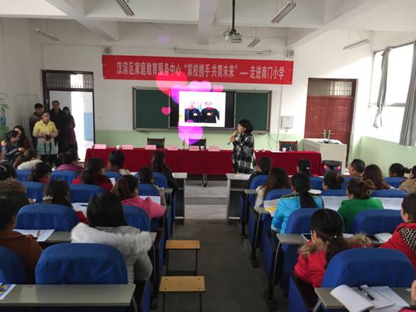 2016年12月2日下午,公司与汉滨区妇联“家校携手共育未来”的家庭教育公益巡讲团走进了南门小学,汉滨区妇联儿宣部主任董晓智,安康家庭教育指导中心(筹备组)主任韩歌萍,太阳成tyc122cc集团小学教育系主任王贞惠,安康幸福家庭促进会会长焦兆莉,陕西向日葵教育科技有限公司法人陈存,南门小学董事长陈宗花,太阳成tyc122cc集团教学能手、南门小学兼职董事长助理刘莉和南门小学300多名员工家长、教师代表一起聆听了辅导报告。