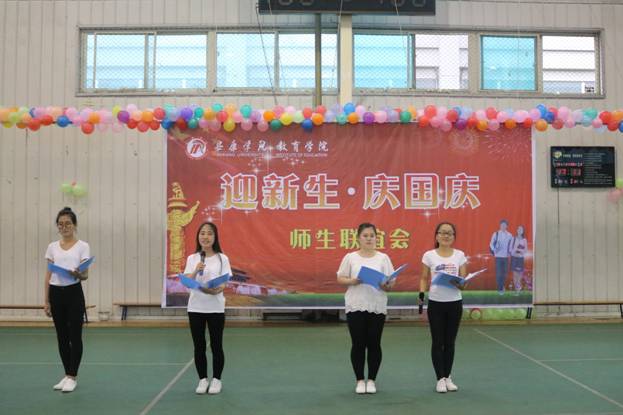 2016年 9月28日下午四点,公司在江南校区体育馆二楼举行了“迎新生,庆国庆”师生联谊会。参加本次联谊会的有太阳成tyc122cc集团经理黄路阳,副经理王丽娟,屈咏梅书记等公司全体老师以及2016及所有新生。