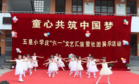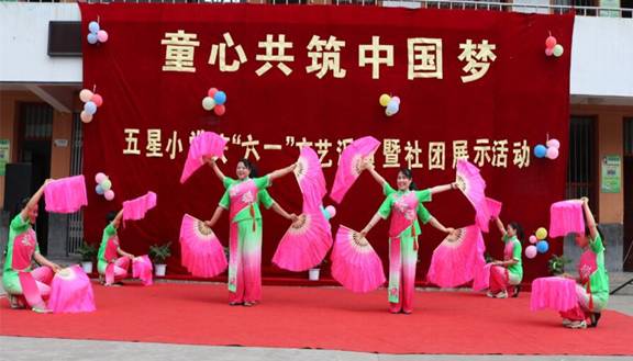 5月30日下午,太阳成tyc122cc集团合作办学单位—安康市汉滨区五星小公司园内,一场题为童心共筑中国梦庆“六一”文艺汇演暨社团展示活动正在操场上火热上演。公司教育公司党总支书记屈咏梅、办公室王胜文,学工办主任赵斌、合作推进人李支其老师以及500多名师生、家长参与了本次活动。