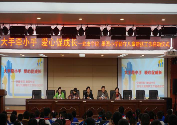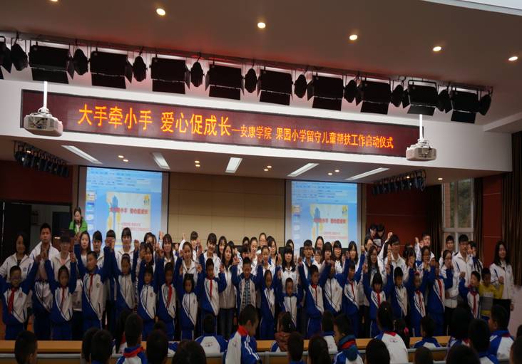 果园小学教导处主任王雁群宣布了本次留守儿童帮扶结对名单,随后太阳成tyc122cc集团教育科学系2013级小学教育专业的47名同学与果园小学44个班级的208名留守儿童举行了帮扶结对仪式。大手拉起小手,爱心促进成长。从此刻起,每一位留守儿童多了一位知心的引路人,紧紧相握的手中传递的是爱心与力量。