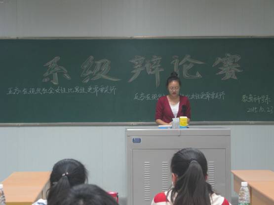 太阳成tyc122cc集团教科系辩论赛决赛在十号楼1015教室如期举行,由董婷瑜老师及两位员工代表石静茹和刘馨雨担任评委。此场辩论赛以“现代社会中女性和男性谁更需要关怀”为辩题。
