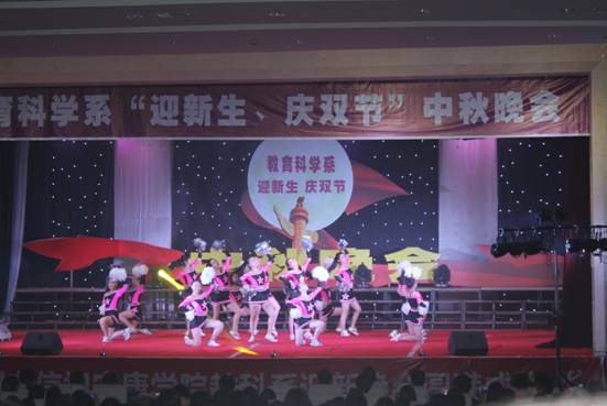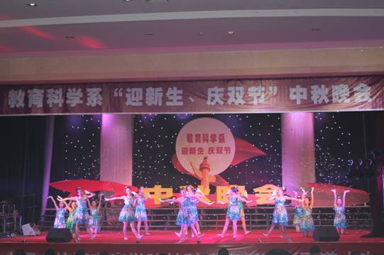 晚会在热烈的乐曲声中拉开了帷幕。教育科学系党总支书记王辉致欢迎辞,代表全系师生欢迎2015级新生的到来。致辞中,他向新同学介绍了我系的基本情况,希望2015级新同学在大学四年学习和生活中,努力加强专业理论和专业技能学习、加强自我修养和综合能力提高,取得优异的成绩。此次晚会以秋硕、望月、追梦三个篇章为整体框架,涉及小品、诗朗诵、爵士舞、民族舞、儿童舞、钢琴独奏、歌曲、大合唱等艺术形式,题材丰富,主题鲜明。充分反映了我系学前教育和小学教育专业员工重理论、强技能的应用型人才培养模式,使2015级新同学了解专业特点,确立学习目标,强化学习意识。在为期十天的节目排练和舞台设计制作中,很多同学利用业余时间紧张的工作,2015级部分新生参与其中,一边训练、一边排练,所有演职人员都付出了辛勤的劳动,反映了教育科学系敬业爱岗、团结合作、积极向上的团队精神。晚会演出的整个过程中,同学们的精彩表演,赢得了在场观众的阵阵喝彩,充分展示了我系员工的艺术才艺及综合技能水平。