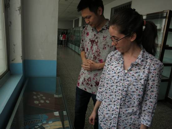 教学观摩活动结束后,Alley女士又应邀参观了教科系的应用型人才成果展示。在整个参观过程中,Alley女士对我系员工所设计的版画、泥塑等艺术作品惊叹不已,并给出了极高的评价。