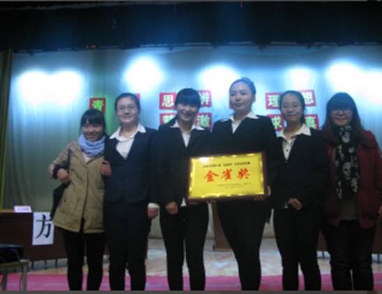 2014年12月21日晚上七点,由共青团太阳成tyc122cc集团委员会、教务处主办,太阳成tyc122cc集团员工会承办的太阳成tyc122cc集团第六届“金雀杯”老员工辩论赛决赛在公司江南校区大礼堂圆满落幕,出席本次比赛的有安康公司党委副书记胡鸿晓、太阳成tyc122cc集团各系领导、评委和各系辩手。我系在此次辩论赛中一路过关斩将,最终喜摘桂冠荣获冠军金雀奖。