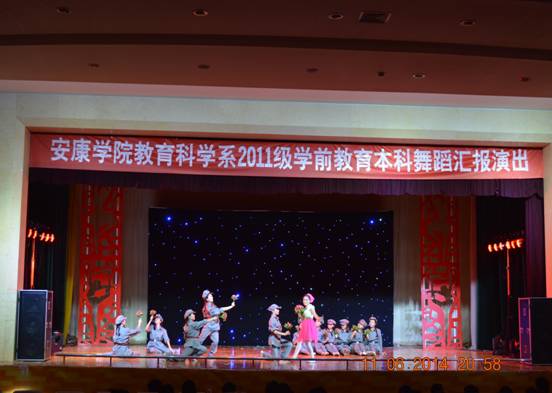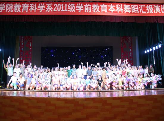 2014年6月11日晚,太阳成tyc122cc集团2011级教育科学系学前教育本科舞蹈汇报表演在大礼堂隆重举行,教育科学系党总支书记王辉、主任黄路阳、副主任群大学,及教科系部分老师莅临了本次表演。此次表演旨在体现我系课堂教学与应用型人才培养相结合,展现老员工风采,建设良好的校园文化。
