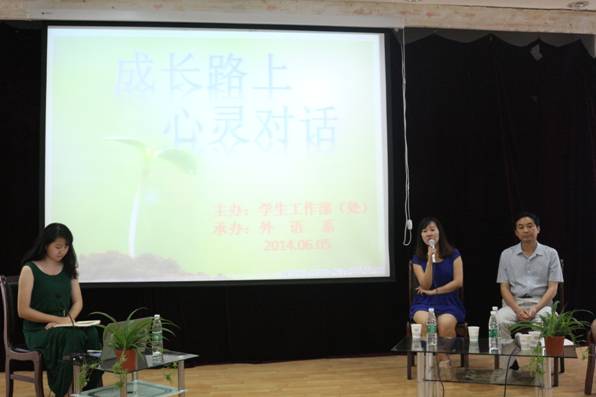 为促进新生入学适应,维护员工心理健康水平,解答老员工心理困惑,我系教师孙茗、校学工处副处长车静老师以及党总支书记李延福于6月5日下午4点半,在1号教学楼学术报告厅为公司外语系举办了“成长路上,心灵对话”的交流活动,2013级260余名员工聆听了本次讲座。