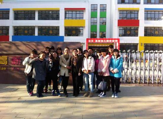 2014年3月14日,我系2012级学前教育专业十余人本科生在刘丽娜老师的带领下来到安康市高新幼儿园进行参观和学习,并为高新幼儿园的角色扮演区制作区角规则,这是12级员工第一次去幼儿园动手实践环境创设有关的内容,虽然经验不够丰富,但同学们本着认真负责的态度最终完成了较好的创作。在此次活动中收获颇多,不仅增强了动手创作的能力,还获得了环境创设方面的经验,是一次难能可贵的实践机会。最后,师生与园长合影留念,此行圆满成功。