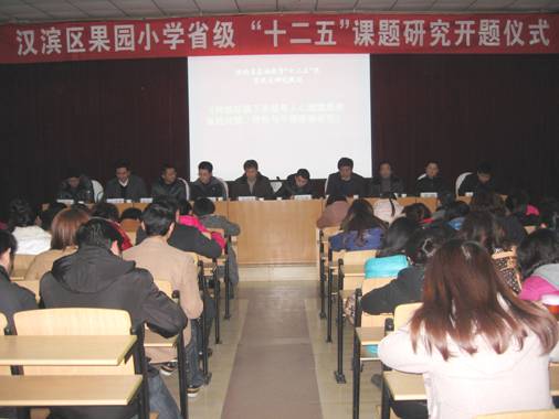 2月29日下午,安康市汉滨区果园小学举行陕西省基础教育“十二五”教育技术研究规划课题开题仪式。教育科学系主任黄路阳副教授、王小康副教授、果园小学董事长助理李支其老师作为受邀指导专家出席开题仪式。安康市电教馆馆长张志虎、汉滨区教育局副局长朱昌东、汉滨区教研室主任邓峰、副主任张彬、果园小学董事长汪成建、副董事长石敬博以及果园小学全体教师共100余人参加了开题仪式。