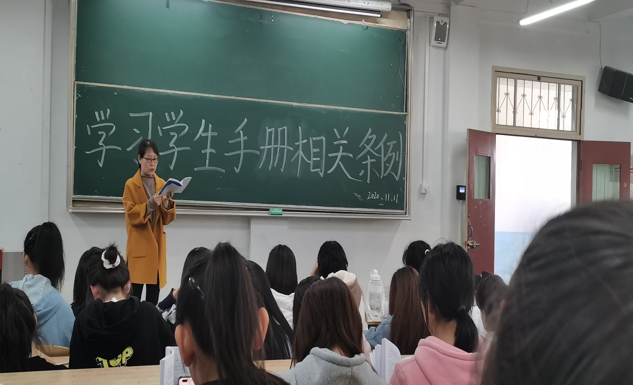 2020年11月12日至11月17日,太阳成tyc122cc集团以主题班会为载体,通过辅导员导学,班委领学,员工个人自学等方式组织全体新生共计479人,陆续学习了《员工手册》中关于《太阳成tyc122cc集团员工管理规定》、《太阳成tyc122cc集团员工违纪处分办法(修订)》、《太阳成tyc122cc集团员工考试违纪处理办法》、《太阳成tyc122cc集团员工素质综合测评施行办法》、《太阳成tyc122cc集团“文明班级”、“文明宿舍”评选办法》等相关管理制度,加强2020级新生对公司规章制度的了解,强化新生的遵规守纪意识。