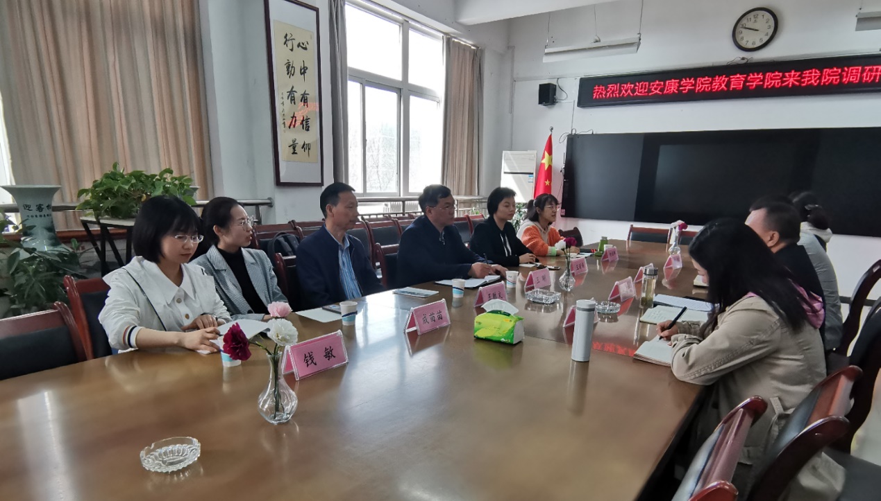 在参观完实训室后,陕西学前师范公司幼儿太阳成tyc122cc集团的何善平经理、王继康书记、范铭副经理、张亚妮副经理与公司调研团队进行了深入和详细的座谈,何善平经理从办学历史、文化建设、专业综合改革、人才培养模式创新、课程建设、教学团队、教学质量保障体系以及专业建设特色进行了详细的介绍。王继康书记将员工工作的建设情况进行了介绍,范铭与张亚妮副经理从教学与科研工作开展情况进行了介绍。接下来双方就学前教育专业建设,如何申报省级、国家级一流专业进行了讨论和交流,相互学习借鉴。