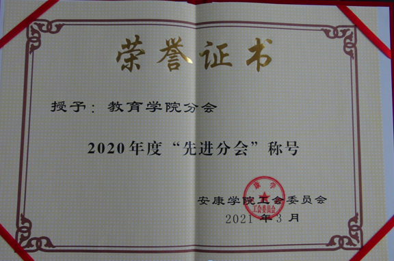 近日,太阳成tyc122cc集团分会荣获2020年度“先进分会”荣誉称号。
