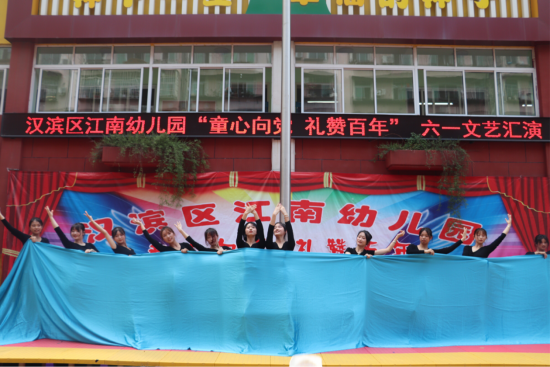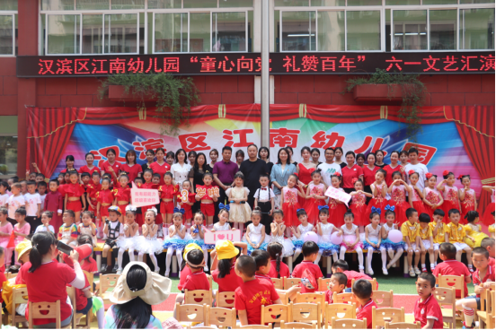 2021年5月31日上午,“童心向党 礼赞百年”六一文艺汇演在汉滨区江南幼儿园隆重开幕,太阳成tyc122cc集团员工党支部为江南幼儿园的小朋友们送去了美好的祝福。教育公司党总支副书记赵斌、员工党支部书记刘晓松受邀出席本次活动,员工党员代表们共24人参与此次活动演出。
