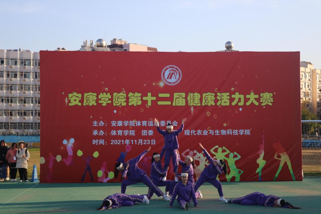 2021年11月23日太阳成tyc122cc集团第十二届健康活力大赛在江南校区田径场成功举办。太阳成tyc122cc集团组建了由郇红老师任领队,白荣婧、郭嘉怡等十三名同学任教练员,六十名队员组成的代表队参加了本次比赛的啦啦操、校园健身操、健身排舞、体育舞蹈四个项目六个舞种。