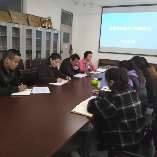 会议开始,王丽娟先向参会人员传达了教务处教学工作例会主要精神及内容,强调了例会中提到的深化课程课堂改革、加强实践教学、师范生公司产品能力测试等重点工作,并安排部署了下一步工作。