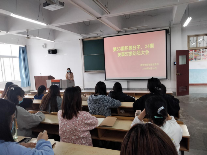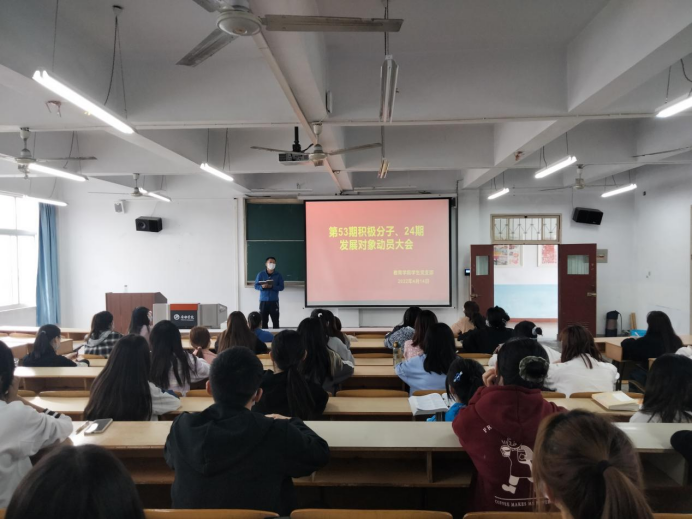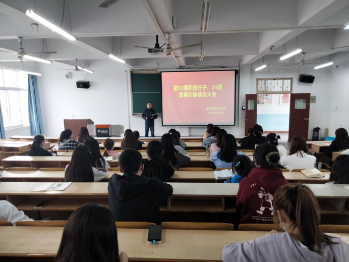 会上,员工党支部书记刘晓松对本期选出的入党积极分子、发展对象表示祝贺,激励同学们端正入党动机、增强理想信念,努力做到从思想上认可党、从精神上追随党,提高自身政治素质,争取在各方面都起到模范带头作用。同时,也强调了党课学习的重要性和必要性,希望入党积极分子、发展对象能够严格要求自己,加强党的理论修养及政治品格的培养,按时按质完成本期党课培训。