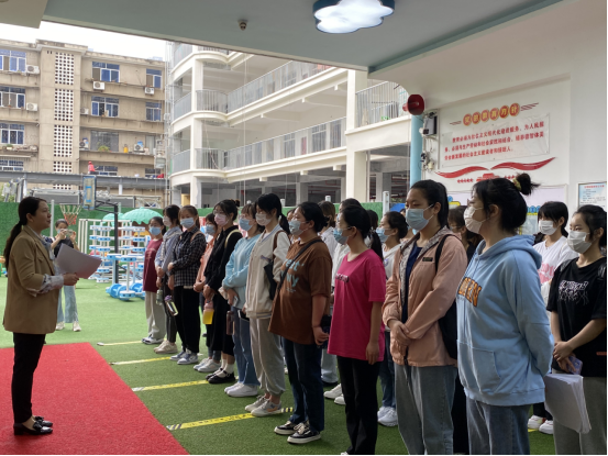 活动开始前,安康市幼儿园的谌园长、王主任对同学们的再次到来表示欢迎。并为全体员工详细介绍了幼儿园各项基本情况,强调了需要注意的安全、防疫等问题,并提出了工作要求与期望,希望全体员工严格遵守幼儿园相关规定,每天准时集合有序到达幼儿园开展见习工作,主动配合开展园内疫情防控管理,积极参与各项教育、教学、生活、保育活动,能很快转变角色、适应岗位,快速融入幼儿园并得到幼儿园全体小朋友和老师的高度认可。