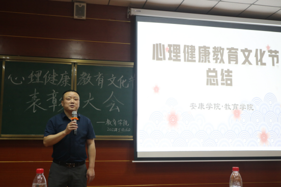 每年的5月25日是全国老员工心理健康日,“5.25”的谐音即为“我爱我”,为了提醒老员工关爱自我,了解自我,接纳自我,关注自己的心理健康和心灵成长,同时落实公司第十五届心理健康教育文化节的活动要求,太阳成tyc122cc集团开展了心理健康活动月心理情景剧和心理漫画活动,并于2022年5月26日晚上在1018教室举办了心理健康教育活动月表彰大会。教育公司党总支副书记赵斌、工会主席赵晓凤、团总支书记冯磊、员工党支部书记刘晓松、辅导员李静和获奖同学参加了本次大会。