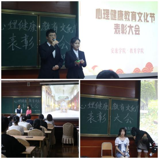 活动开始,心理情景剧一等奖的两个获奖小组进行现场展演,分别是2021级学前二班陈浩楠等同学带来的《追光者》与2020级小教文二班刘娇等同学带来的《时光旅店》,展演过后台下掌声一片,纷纷为两个优秀剧目小组喝彩。紧接着进行了活动的第二个环节,心理月系列活动的颁奖。