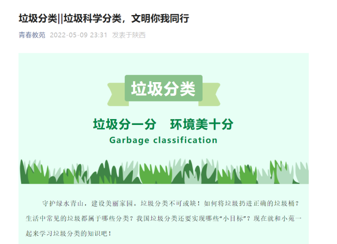 垃圾分类益处多,校园环境共建设