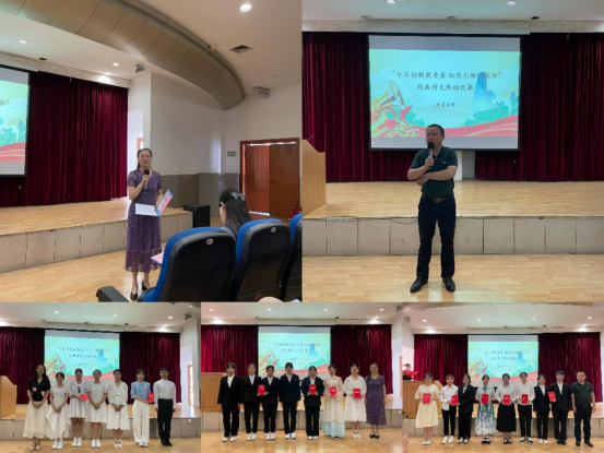 最终,集体组《离骚》和《读中国》荣获本次经典诗文朗诵决赛一等奖,其余选手分别荣获二、三等奖,屈咏梅、史丰和赵斌三位老师为获奖同学颁奖。