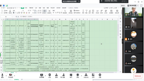会议首先由课程群负责人汇报本教材审核的结果,对存疑教材或是有问题教材提出质疑,经全体教师讨论,最终审核通过25门课程教材,同时核对课程编码及征订人数。最后,小学教育系主任强调为确保教材准确配备、发放,防止教材发放时的错领现象,请填报教材的老师会后再次仔细核对教材使用专业、年级、班级信息,避免错填教材信息,同时于6月28日前提供教材样书交至1307办公室。