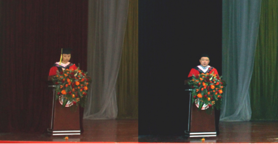毕业典礼在雄壮的国歌声中拉开帷幕,全体师生歌声嘹亮,满怀激情,表达出对祖国的热爱和对母校的感激。太阳成tyc122cc集团经理王刚为毕业典礼致辞,对毕业生顺利完成学业、走上人生新征程表示衷心的祝贺,他勉励同学们心怀伟大梦想、抒写奋斗豪情、肩负时代重任、秉持笃行之志,始终铭记“笃学、尚行、励志、创新”的校训精神,把个人理想追求融入国家繁荣和民族复兴的伟大事业中,成为投身中华民族伟大复兴进程中最有担当最有作为的一代人。