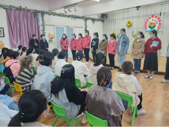 张静园长向员工们介绍了幼儿园的基本情况,以及本学期的实习安排,强调了幼儿园的基本规章制度与防疫防控的注意事项。并组织员工与带班教师进行了简单的见面,将员工进行了分班安排。